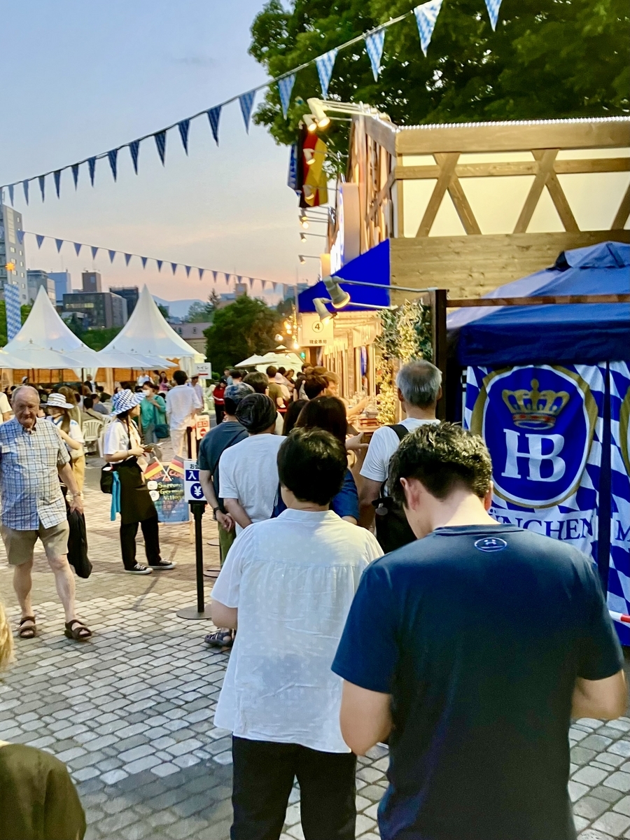 まあそれでも、やはり屋外で飲む冷たいビールは格別で、我々も夕飯前に軽く一杯のつもりがついつい何度か注文の列に並ぶことになってしまった。